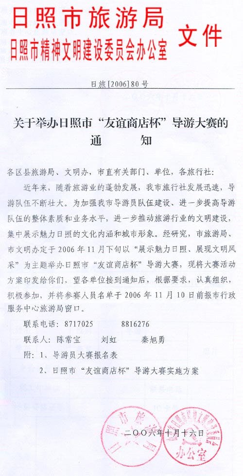 附:1、导游员大赛报名表 2、日照市“友谊商店杯”导游大赛实施方案