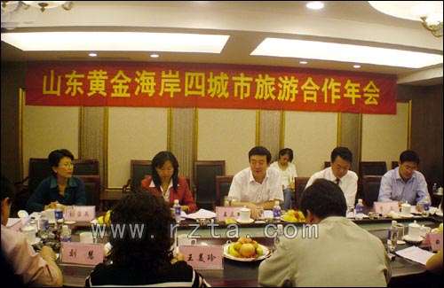 青岛市旅游局质检所所长高志全,烟台市旅游局调研员孙光辉,威海市旅游局副局长鞠院洪以及四城市的市场科科长、质检所所长、旅行社协会会长参加会议。日照市旅游局局长王立新出席会议并讲话。日照市旅游副局长张荣英主持会议。