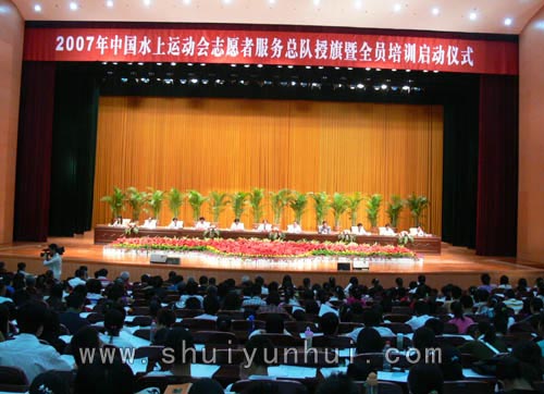 水运会志愿者服务总队授旗暨全员培训在市会展中心举行(2007年05月19日)