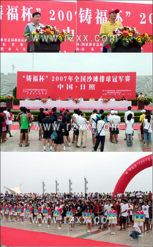 “铸福杯”2007年全国沙滩排球冠军赛经过4天的激烈角逐于7月9日下午落下帷幕,闭幕式在日照市万平口演艺广场隆重举行。