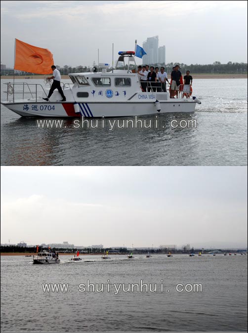 为切实做好2007年中国水上运动会竞赛裁判船艇保障工作,确保水运会水上各项目比赛圆满成功,按照杨军市长、解世增副市长的要求,水运会船艇保障演练于8月17日下午4:00在水运会基地举行。 据悉,按照水上竞赛项目要求,本届水运会共需裁判船52艘,其中帆船帆板项目需30艘,水上运动基地主副赛道竞赛项目需22艘。船艇来源分别是日照海事局提供7艘,市体育局提供5艘,市海洋与渔业局提供1艘,征用、租赁39艘。 参加本次演练的船艇共有31艘(在帆船帆板场地的大船未参加)。演练船艇从世帆赛基地出发,日照海事局警船打头开道,从水坝船闸进入龙舟码头集结,依次从赛艇比赛赛道周边环绕一周,然后穿越万平口大桥,通过拦水船闸,驶入世帆赛基地港池,演练结束。整个演练过程紧凑有序、气势宏大,充分表明竞赛用各个裁判船艇状况良好,船艇保障工作成效显著,为水运会各项比赛项目的顺利进行奠定了坚实的基础。 出席本次演练活动的有市体育局局长赵文胜、市海事局副局长刘国军、水运会竞赛部部长刘家坤及船艇保障组、水上安保部的有关领导。