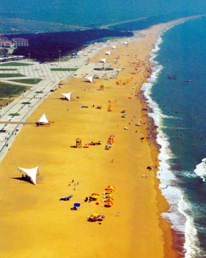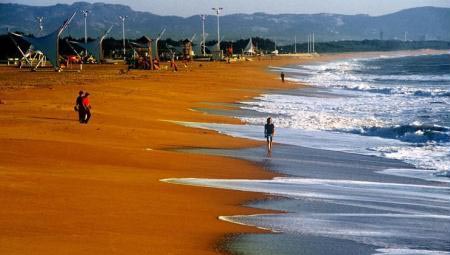 日照的沙滩之大,为国内仅有,真是令人震撼。境内100多公里沙滩中,色泽如金、细如粉末、深达10米的“金沙滩”,竟有64公里长!美籍华裔物理学家丁肇中先生,祖籍就在日照,他首次返回故里,就曾惊叹这儿的沙滩为“夏威夷所不及”。这里每日潮涨潮落两次,每次相隔12小时。潮落尽,滩涂宽达400米,大海“让”出来一个巨大的“游乐场”,供人们尽情地赶海、漫步,享受日光浴。若按世界公认的海滨度假人均应该占有的沙滩面积计算,日照海滨一天起码可以接待500万游客!