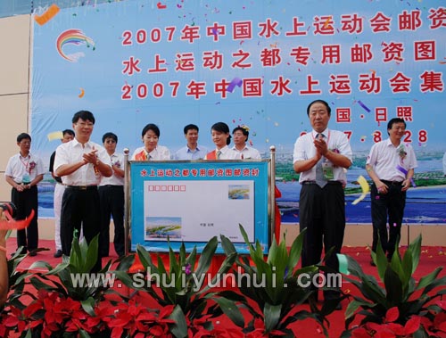 8月27日上午,2007年中国水上运动会纪念邮资明信片首发式、水上运动之都中国日照专用邮资图案信封首发式、2007年中国水上运动会集邮展览在水运基地举行。中国邮政集团公司副总经理冯新生,国家体育总局监察局纪检监察室主任闫利生、水上运动管理中心副主任刘爱杰,山东邮政公司总经理党组书记陈必昌、副总经理刘福义,中共日照市委副书记、市长杨军,日照市副市长解世增以及水运会各代表团团长、组委会成员、各部室负责人出席了此次开幕式。解世增致词。