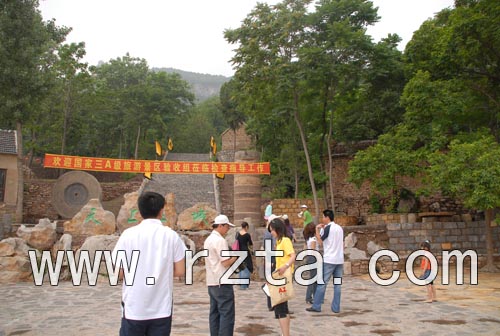 沿着青石铺成的山路拾阶而上,伴随着我们的是路两边沂蒙山区最原始的森林和悠扬的沂蒙小调。雨后山间的空气格外清新,山间丛林郁郁葱葱,那油油的绿色,仿佛要从枝头叶尖滴落,让人心醉。正值板栗开花的季节,板栗花的清香在山间弥漫,沁人心脾。每到秋天,红叶满山、百果挂枝,到处充满着丰收的喜悦,栗子树和柿子树生长在路的两边,有着“事事顺利” 寓意。