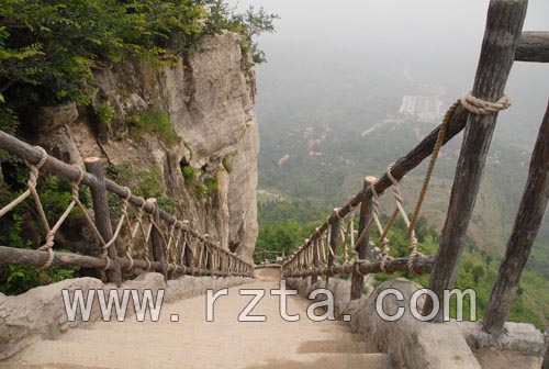 栈道紧贴陡峻崖壁而建,是登山王城的天梯。在崖壁间,眼前顿时有豁然开朗的感觉,视野中是沂蒙山区特有的群崮争辉的景象。天上王城—纪王崮崮顶面积有4平方公里,是面积最大的崮,也是唯一有人居住的崮,被誉为沂蒙第一崮.这里四周悬崖峭壁,易受难攻,是一处难得的军事要地,巨石垒成的城墙,环绕四周、。据说这是当年姬王为了抵御外敌而建造的防御城墙。石块都是由巨石切割而成,小的有数百公斤,大的有五六吨重,在如此陡峭的山崖上,我们的前人究竟是运用了什么样的智慧来完成这个伟大的工程,至今仍然是个谜。想当初,纪侯迁都到这里,怀着光复国家的心愿,韬光养晦,重整旗鼓,充分利用山崮的地理优势,修筑城池,建造宫殿,开辟演武场,操兵练马;同时,安抚百姓,垦荒种地,发展生产,积蓄力量,以图重整旗鼓,东山再起。当时的纪王城可谓辉煌一时。