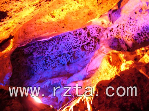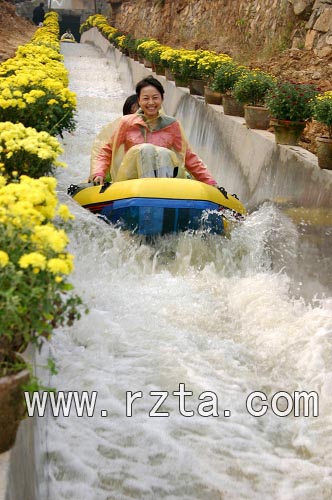 激情漂流也是地下画廊三期工程的重头戏,这条山东省最长的水道,长月1500米。漂流的起点,是画廊海底奇观的入口。一开始的一段水道相对平缓,水流也比较慢。一边乘橡皮艇顺流而下,一边从容欣赏洞内如诗如画的溶洞美景,人们可以体会到另外一种乐趣。当橡皮艇驶出山洞,眼前豁然开朗,仿佛由黑夜中突然转到白昼,水道的坡度也随之加大,橡皮艇也加快了前进的速度,时而飞身跃起,时而迅速落下,溅起的水花铺面而来,让人既紧张,又刺激。在人们还来不及多想的时候,又一个山洞迎面而来,从光明之中重新又回到黑暗之中。下滑的水道更陡,速度也更快。不论是滑草还是激情漂流,都是勇敢者的游戏,不过没有什么好担心的,都很安全。