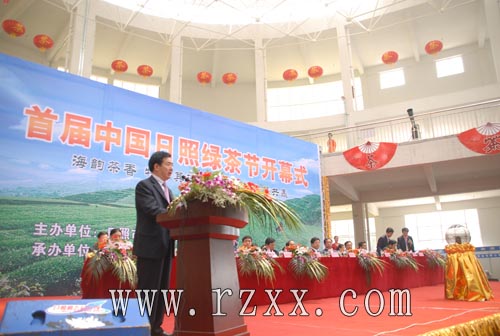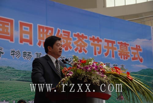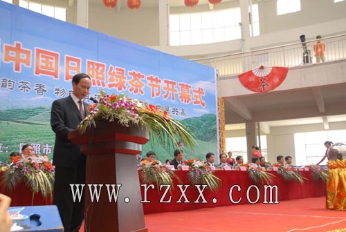 日照市委副书记、市长赵效为在致辞中向前来参加绿茶节的展商介绍了日照作为北方绿茶生产基地的优势。在致辞中说到,日照区位优势独特,生态环境优美,拥有“亿吨综合大港、临港产业基地、阳光度假海岸、水上运动之都、生态宜居家园、大学科技园区、历史文化之城和北方绿茶之乡”八张亮丽的城市名片。日照是“北方绿茶之乡”,现有茶园12万亩,年产茶约6000吨,分别占山东省的50.4%和74.5%,已成为秦岭、淮河以北规模最大的绿茶生产基地。近年来,我们先后举办了中国(日照)国际工艺品博览会、中国(日照)国际茶博览会等系列活动,对于促进日照经济社会发展、提高城市知名度和美誉度起到了重要作用。