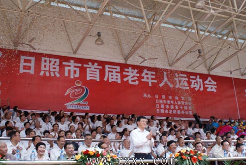 山东省老年协会主席曹学成出席开幕式并对日照市首届老年人运动会的开幕表示祝贺,日照市委书记、市人大常委会主任杨军出席开幕式并宣布大会开幕,日照市委副书记、市长赵效为致贺词,日照市人大常委会第一副主任周慧平,日照市常委、市纪委书记张喜忱,日照市委常委、日照军分区政委密首范,日照市副市长、大会组委会副主任解世增,日照市政协副主席王坤英,日照市老年体协主席、大会组委会执行主任肖开富,市体协副主席、大会组委会执行副主任靳惠民、荆建迎及已退休老干部和各代表团出席开幕式。