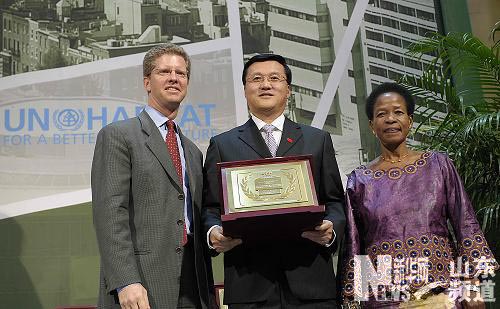 美国当地时间10月5日上午,联合国人居署在华盛顿国家建筑博物馆举行隆重的“2009世界人居日活动及颁奖仪式”,日照市荣获“联合国人居奖”殊荣,日照市委书记、市人大常委会主任杨军率团出席并领奖。