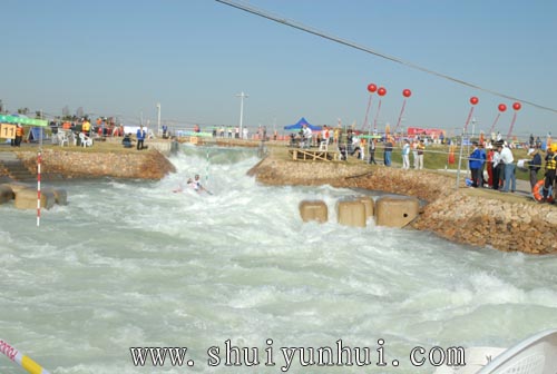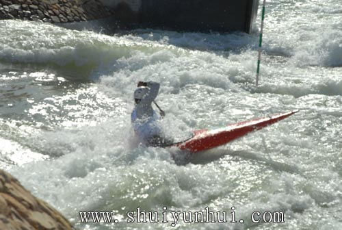 上午9时,男子单人皮艇比赛第一轮率先举行。在激流回旋的赛场上,运动员在飞溅的水花里穿越一个个障碍,运动员矫健的体形,有力的动作,漂亮的舟艇在激流中划过的轨迹,现场观众无不为运动员们喝彩和鼓劲。摄影爱好者们的镜头始终对准在水中与激流搏击的运动员们,运动员运用自己娴熟的技巧和坚强的毅力穿越激流,战胜复杂多变的环境。运动员们这种与水对抗的精神,特别是与激流搏击后从水中冲出来时的瞬间让现场观众振奋。