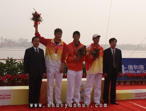 10月27日,第十一届全国运动会赛艇比赛男子单人划艇决赛在日照奥林匹克水上公园结束,江西选手杨文军夺得此次决赛的金牌。 上午九点十五分,男子单人划艇决赛开赛,江西选手、两届奥运冠军以3项小组第一的成绩晋级决赛的杨文军不负众望以1分56秒131的成绩夺得本次比赛的金牌。来自广州队的李强和福建队的黄少坤分别以1分57秒389和1分57秒666的成绩摘得本次比赛的银牌和铜牌。