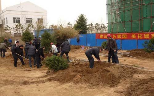 值此春暖花开、万物复苏的大好时节,2010年3月20日下午,公司领导与天诚房地产全体员工一起来到华尔兹工地现场,共同参加天诚华尔兹以“共建绿色家园,美化城市环境”为主题的植树活动。公司领导与全体员工一起亲自为树苗挖土、浇水,共同为华尔兹小区添上一片浓浓的绿荫和一片盎然的春意。