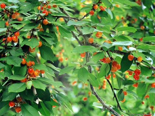 同时推广无公害大樱桃生产技术;与农研部门联合开发富硒樱桃,形成“特色+绿色”的产业模式,以樱桃个大艳丽、皮薄核小、味甜汁多的特点,备受游客青睐,近日正是轻风暖阳季节,省内及上海、南京、徐州、连云港等地区游客慕名而来、络绎不绝,沿山路上行、顺沟谷蜿蜒,樱桃随手可摘,景色处处可现。亲临树下采摘体验,再进农家品味美餐,“眼望树下游人醉,又闻客赞饭菜香”的采摘游成为“城里人”的时尚之旅,正所谓:碧玉欲掩遮不住,赤珠粒粒探枝头,前行林荫正疑静,忽声问客知近人。
