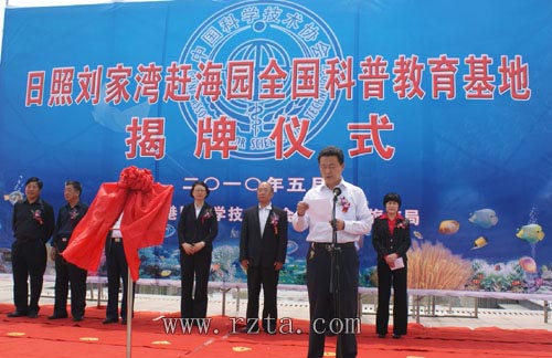 仪式上,副区长安丰华在讲话中说,近年来,刘家湾赶海园在大力发展滨海旅游的同时,紧紧围绕“节约能源资源、保护生态环境、保障安全健康”这一主题,投资建设了海洋生物馆,采取图文、视频等多种直观、生动的形式展示海洋科普知识,探索出一条科普与旅游相结合的新路子,成为日照市首家“全国科普教育基地”。