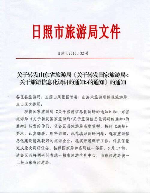 关于转发《山东省旅游局转发国家旅游局<关于旅游信息化调研的通知>》(2010年06月13日)