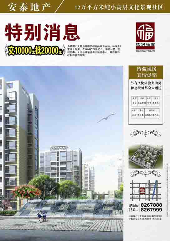 安泰·德润福临,珍藏现房,真情促销(2010年08月06日)