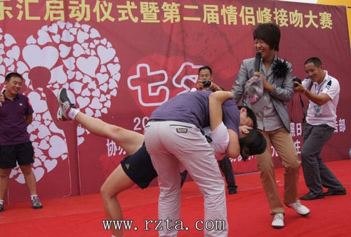 初秋艳阳高照,八月丹桂飘香。8月16日,正值暮夏初秋七夕情人佳节之际,日照九仙山情侣峰景区举行了日照第二届“唇唇欲动,KISS有礼”接吻大赛。27对情侣在观众的呐喊声中,激情热吻。本次比赛年龄最大的40岁,最小的19岁。选手们采用各种花样“热吻”:飞翔式亲吻、背翻式仰吻、拉丁式侧吻,整个比赛异彩纷呈。