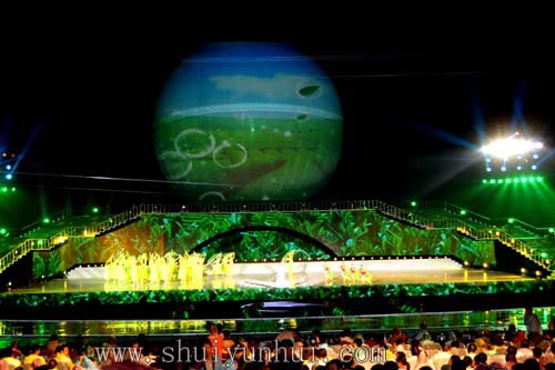 舞台设计是本次文艺演出的一大亮点。舞台设计运用声光电高科技视频技术,对中国水上运动会这一全新的赛事和日照作为水上运动之都动感、时尚的魅力风采进行全方位、多角度的展示。 同时在将舞台艺术和广场艺术有机结合的基础上,突出舞台艺术,具有很强的视觉冲击力。