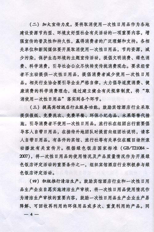 关于逐步取消宾馆酒店行业一次性日用品的通知(2010年11月15日)