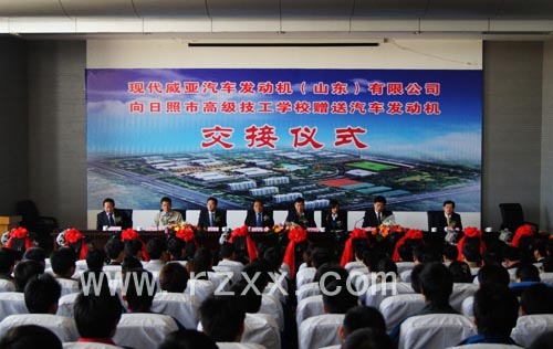 4月22日,现代威亚汽车发动机(山东)有限公司向日照市高级技工学校赠送汽车发动机交接仪式在日照高级技工学校隆重举行。市委常委、宣传部长、日照经济开发区党工委书记毛继春,日照经济开发区管委常务副主任李登来、副主任马维强,现代威亚汽车发动机(山东)有限公司李丙浩先生等出席仪式,仪式由耿光生书记主持。