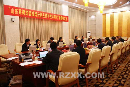 随后,日照市科技局组织中国茶叶学会专家组在日照会展中心会议室进行了“山东茶树冻害成因分析及防护技术研究”的课题鉴定会,会上,专家小组就茶树冻害进行了全面深入的探讨和分析,研究了不同地形地势、土壤质地、茶树品种、防护林网、农艺措施、防护设施等因子对茶树冻害的影响,明确了茶树冻害类型、冻害主导因子和不同防护措施的防护效果,提出了《山东茶树越冬防护技术规程》,形成了一系列创新的综合越冬防护技术。