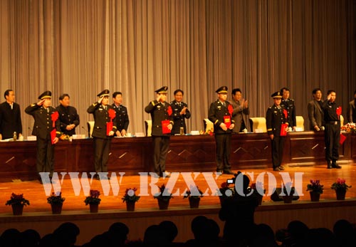 1月14日,日照市保安服务总公司2011年度总结表彰大会在日照会展中心举行,为表彰先进,激励斗志,进一步推进保安工作和队伍建设再上新台阶,大会就2011年度保安服务总公司的先进工作者和优秀团队进行了表彰和颁奖,日照市公安局政委来永庆、公安局副局长孙运涛、治安巡逻支队政委郭淑钦,日照市保安服务总公司总经理魏绪杰,副总监武装押运大队长李法贞、副总兼人力防范公司经理公培元、副总经理刘国亮等列席了大会。公培元主持会议。