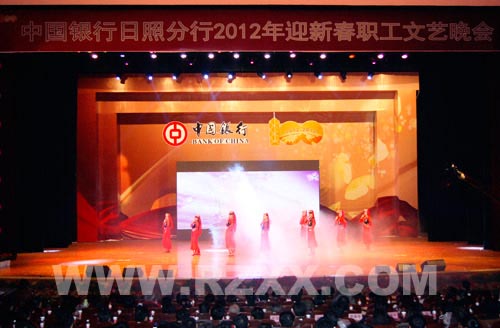 缤纷舞台奏响华丽优美乐章,中国银行职工喜气洋洋迎新春。1月15日晚,中国银行日照分行2012年迎新春职工文艺晚会在日照会展中心隆重举行,会展中心演艺厅内歌舞欢腾,掌声雷动,中国银行日照分行的员工们自导自演的精彩节目为观众们奉上了一道华丽的视觉盛宴。