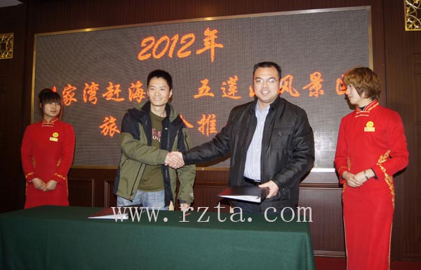 推介会上还举行了旅行社代表与景区互相签署合作协议的仪式。双方达成旅游合作共识,将刘家湾赶海园与五莲山风景区旅游资源整合,打造日照精品旅游线路,推向市场。