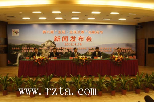 2012年4月18日10点由五莲县人民政府、日照市旅游局主办的“五莲之春”杜鹃花节新闻发布会在日照君临天下大酒店隆重举行。本次参会人员有日照市旅游局领导、五莲县领导、各承办单位、日照市各新闻媒体及部分旅行社领导,涉及新闻界、旅游界、企业界三大领域。发布会由日照市旅游局副局长禚磊主持。