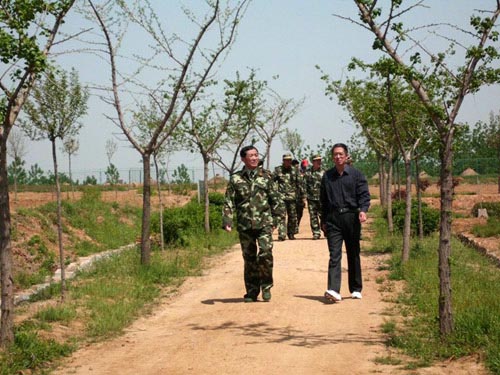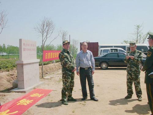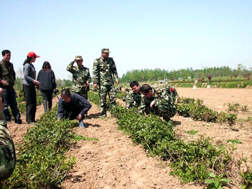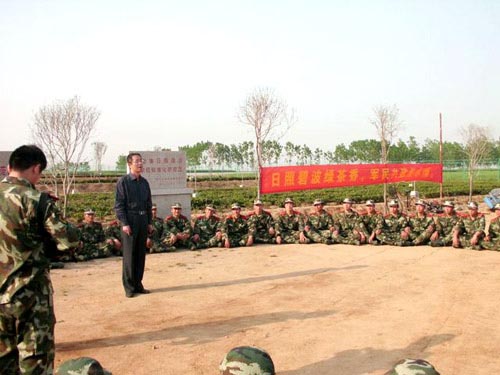 图为:武警日照支队政委等领导亲临基地带队拔草