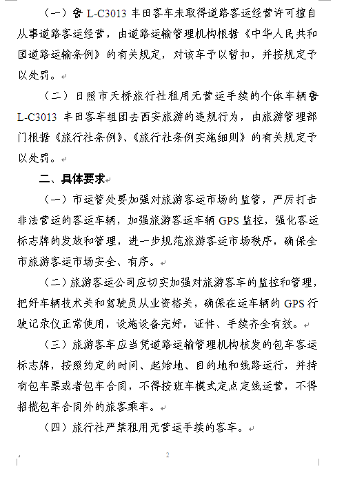 关于鲁L-C3013客车非法营运查处情况的通报(2012年06月26日)