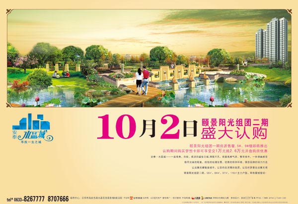 颐景阳光组团一期房源售罄,5#、9#楼即将推出 认购期间购买梦想卡最高可享交1万元抵2.6万元开盘购房优惠 安泰·水晶城——一座尊贵、自信、成功的盛世之城,洒脱不凡,欲显高雅气派,繁华闹市,一份清幽感受 极尽完美的配套、绝佳的地理位置、优雅的绿洲环境、强劲品牌的倾力打造 让这里炫耀整座城市,让您的生活镌刻品质,让您的梦想在这里实现 颐景阳光组团二期,58㎡、84㎡、97㎡、116㎡主力户型,即将震撼登场! 贵宾热线:0633-8267777 8707666 接待中心:日照市海曲东路水晶花园商务楼B座沿街