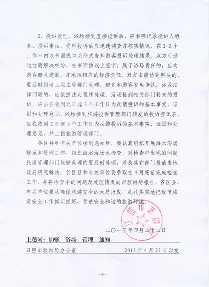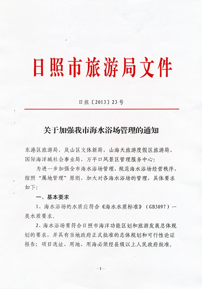 关于加强我市海水浴场管理的通知(2013年05月13日)