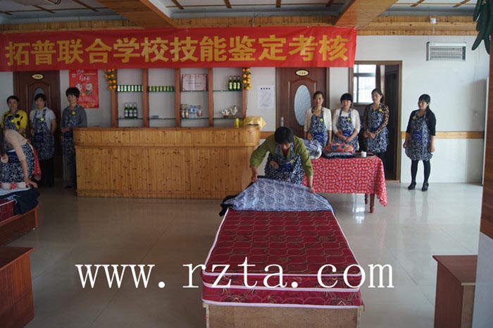 2013年5月13日,山海天旅游度假区拓普联合学校技能鉴定考核在乔家墩子村委会顺利举行。职业技能鉴定是一项基于职业技能水平的考核活动,属于标准参照型考试。它是由考试考核机构对劳动者从事某种职业所应掌握的技术理论知识和实际操作能力做出客观的测量和评价。职业技能鉴定是国家职业资格证书制度的重要组成部分。为了能够更加专业的服务旅客,共有100名渔家工作人员参加考试。