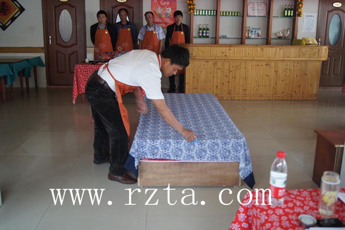 据拓普联合学校秦校长介绍,参加本次考试人员所穿的服饰、考试物料都是由学校提供,在面料花色的选择上,充分考虑民俗旅游村所接待的客户群体的特点,最大限度的让旅客能够有耳目一新的感觉。