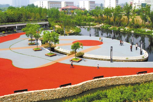 5月21日,几名学子在大学科技园公园游玩。 大学科技园公园位于日照大学城腹地,占地面积8.8万平方米。在建设上,将苏州园林的造园手法和日照文化元素融入其中,建设了琴韵广场、飞舟岛、明智广场、梅香园等26个景观区,栽植各类植物150余种。该公园由市住建委2011年5月份开工建设,至2012年3月正式完工,现经过一年多的养护,正绽放出勃勃生机,成为市民、大学生休闲健身的好去处。