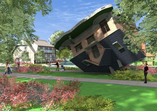倒置屋,顾名思义,就是倒置的房子,不仅仅房屋是翻转的,屋内所有的家具、摆设都是倒置的。游客走进去,给人一种时空错乱的感觉。近年来,倒置屋在欧美尤其流行。据了解,世界上的“颠倒屋”绝非波兰一座:日本九州有一座“倒置屋饭店”;美国有“倒置的游乐场”,西班牙的“加德满都屋集主题公园” 等,但目前在国内,尚无知名的倒置屋旅游景点,有的也只是倒置的房间之类的体验项目,并没有整幢房子翻转的倒置屋。