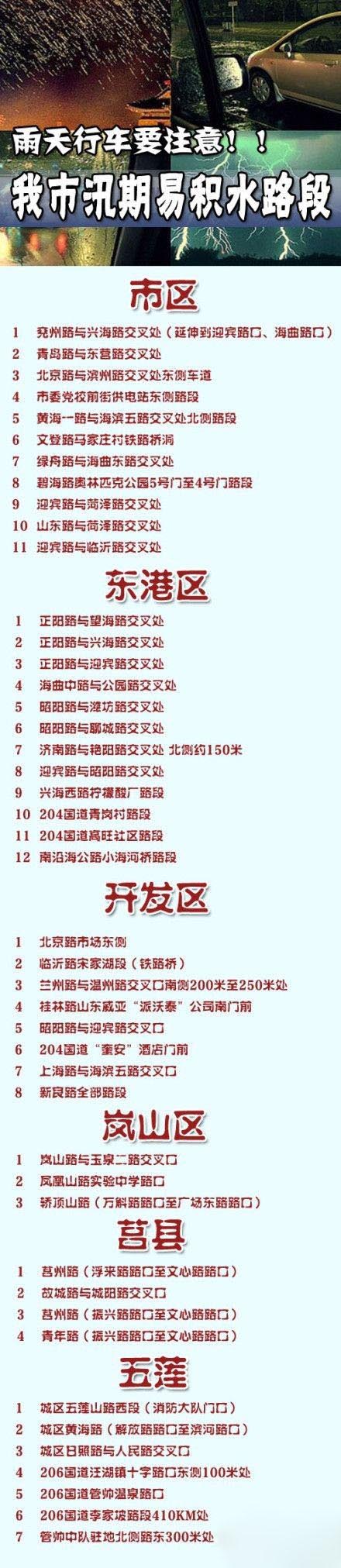 日照交警发布全市汛期45处积水路段 提醒驾驶人(2013年06月18日)