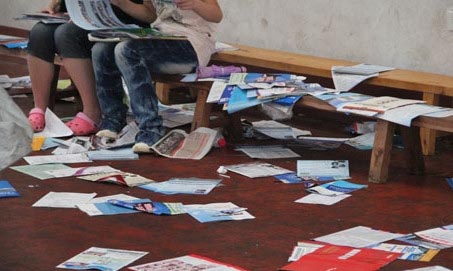 日照高考咨询会现场“人才”散去垃圾成片(2013年06月27日)