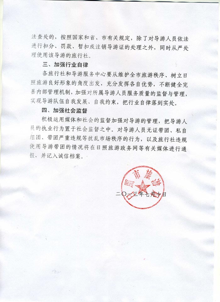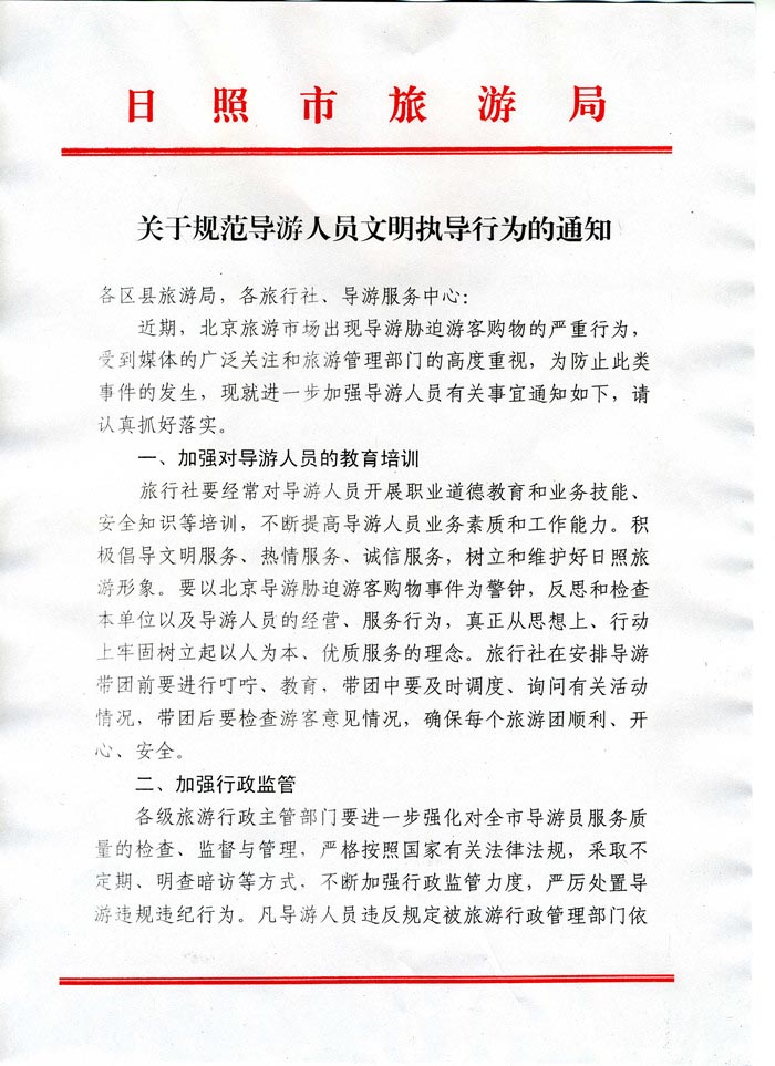 关于规范导游人员文明执导行为的通知(2013年07月15日)