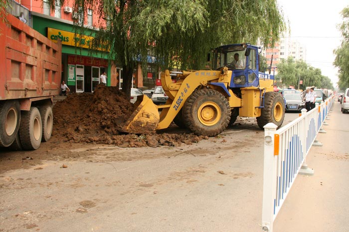 7月15日早晨,正阳路老文化宫西侧路边上出现了一大堆“从天而降”的土堆,估计有近20立方米,市环卫处立即派人赶赴现场进行处理。“估计是夜间渣土运输车偷偷作业时爆胎了,然后就把一车土倒在了路边。”保洁一公司经理说。由于土堆较大,市环卫处调用一台推土机和一台12吨运输车进行了处理,然后又进行了人工铲、洗作业。