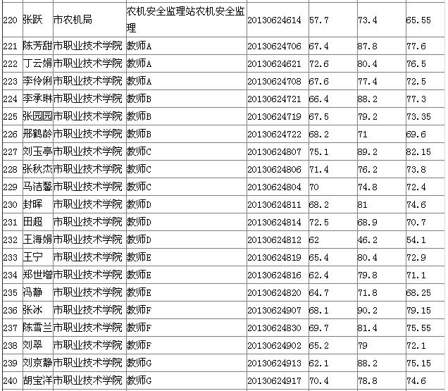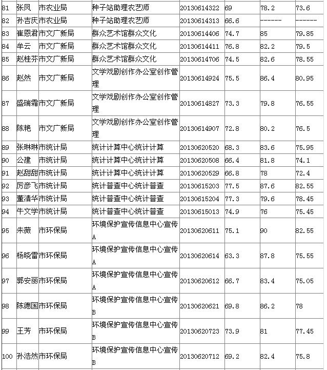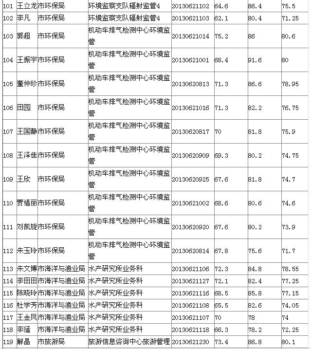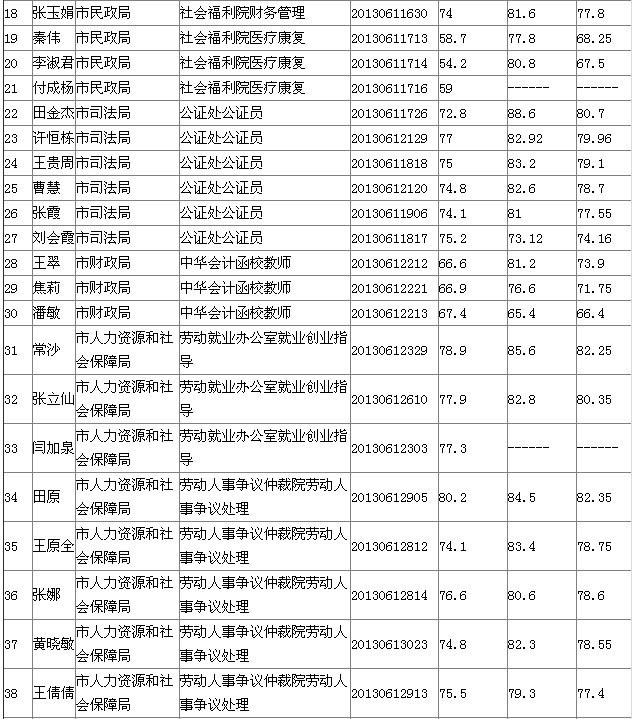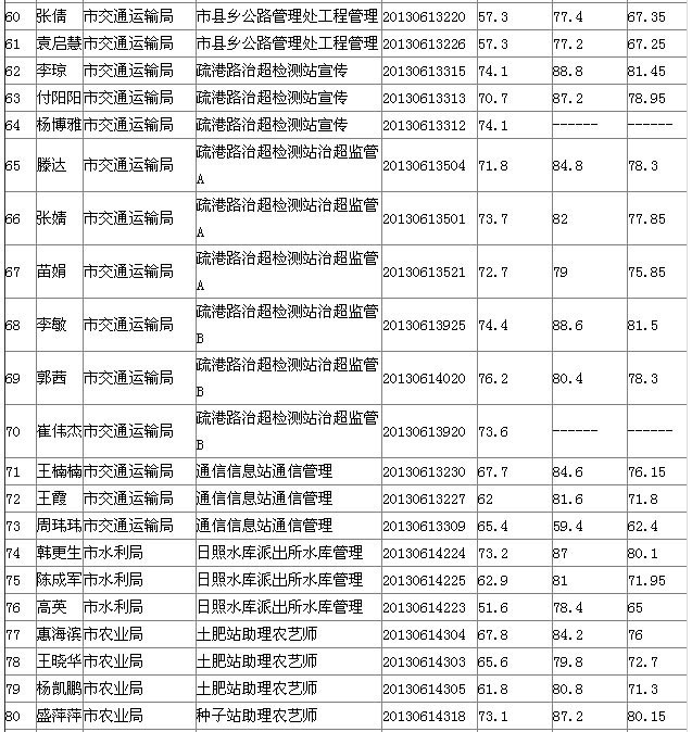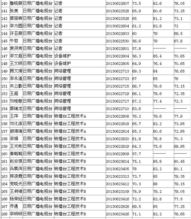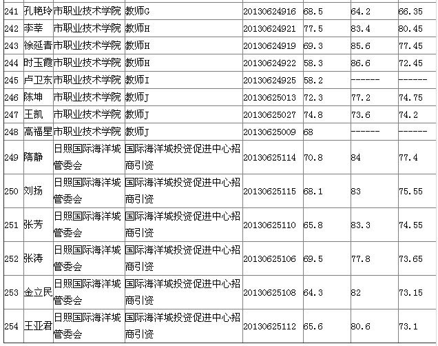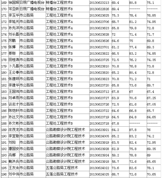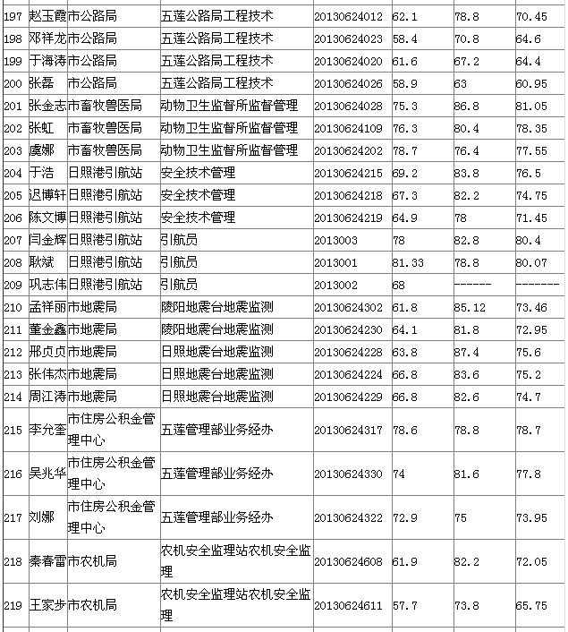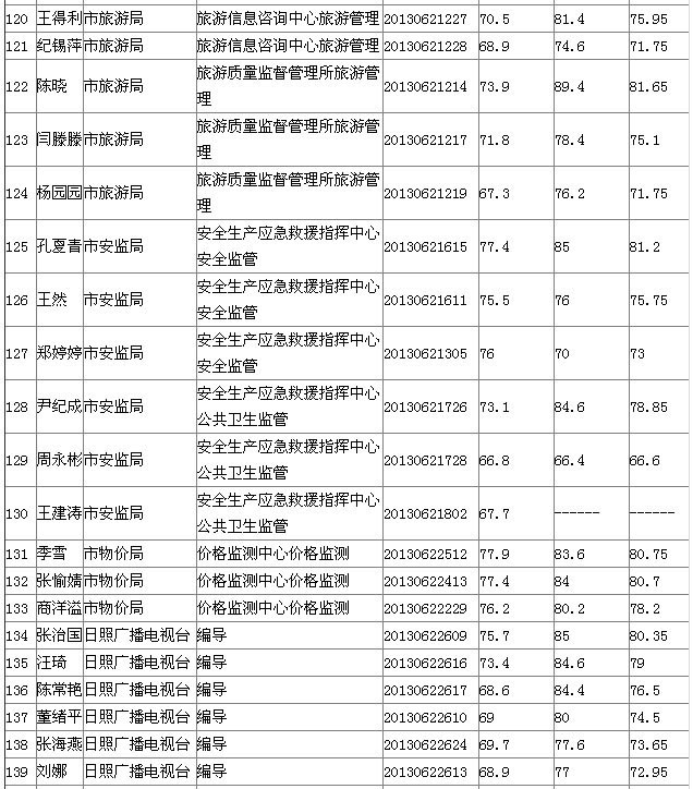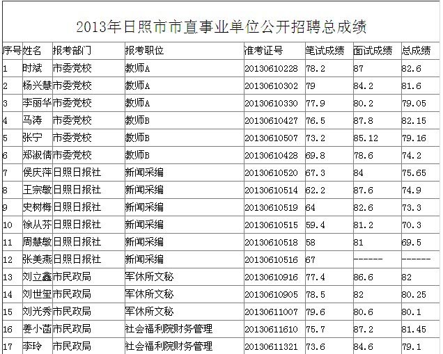 2013年日照市市直事业单位公开招聘总成绩公布(2013年07月19日)