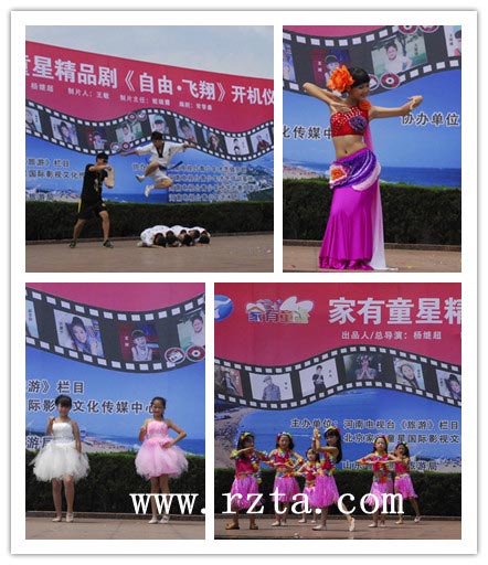 8月2日,河南电视台“家有童星”百集少儿系列精品剧《自由•飞翔》在日照市万平口演艺广场举行开机仪式,日照市旅游局副局长赵志超、河南电视台“家有童星”剧组出品人兼总导演杨继超及制片人王敏等出席开机仪式现场。