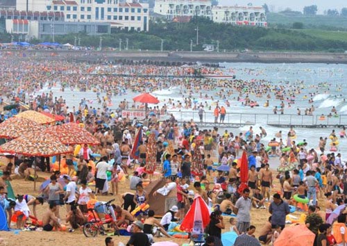 2013年8月3日,山东省日照市第三海水浴场人山人海,来自全国各地的游客涌到沙滩上、海水里,尽情享受大海的清凉。 进入7月份,与火热的天气一样,日照市暑期滨海旅游持续升温,每天接待游客超过10万人次,无论是广场还是沙滩,到处都是从全国各地赶来,享受近海亲水乐趣的游客。 据了解,今年的游客较往年,除人数增多之外,客源范围更广,以山西、江苏、河南、河北、安徽、北京、陕西及省内周边地市为主,游客由往年的旅游团队居多转变为自驾游为主。随着气温的持续偏高,日照滨海游将继续呈现火爆的景象。 在前段时间,同程网发布的《2013暑期国内海滨城市旅游趋势报告》中,日照与三亚、厦门、青岛、大连等城市一起成为全国滨海旅游十大热点城市。而近几个周末港城滨海旅游的火爆场面,也印证了日照旅游的巨大吸引力。