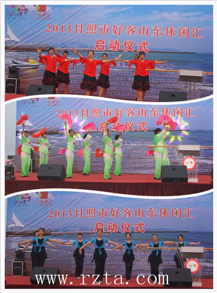 8月9日晚18:30,锣鼓喧天、礼炮齐放,“2013日照市好客山东休闲汇启动仪式”在山海天旅游度假区阳光海岸广场隆重举行。山东省旅游局国内旅游市场开发处处长王春生,日照市旅游局局长王立新, 山东省旅游局国内旅游市场开发处副处长司琰,山海天旅游度假区管委副主任王一冰出席启动仪式,仪式由日照市旅游局副局长赵志超主持。来自市直各部门及各区县负责人,媒体记者和游客共约10000人参与启动仪式。
