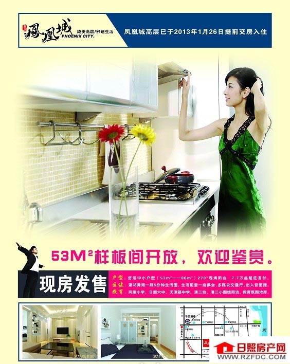 新力凤凰城,53㎡样板间开放,欢迎鉴赏!新力凤凰城高层已于2013年1月26日提前交房入住。舒适中小户型(53㎡-86㎡)270°观海阳台,7.7万起超低首付。 相关链接: 新力凤凰城,总占地100余亩,总建筑面积约10万平米;紧邻黄海一路5分钟商圈,生活配套一应俱全,多路公交通行,出入便捷;凤凰小学、日照六中、天津路中学、港二幼儿园、港二小围绕周边,教育氛围浓厚;1#高层舒适中小户型,53-86㎡,270°观海阳台,动静分离。新力凤凰城,将成为日照房地产发展格局下的代表作,为日照现代都市人的平淡生活带来了鲜活色彩,给亲地舒适健康生活提供了切实可行的方案,引领着未来,让人们可以重新憧憬一种浪漫、自由、完美、亲地的生活状态。