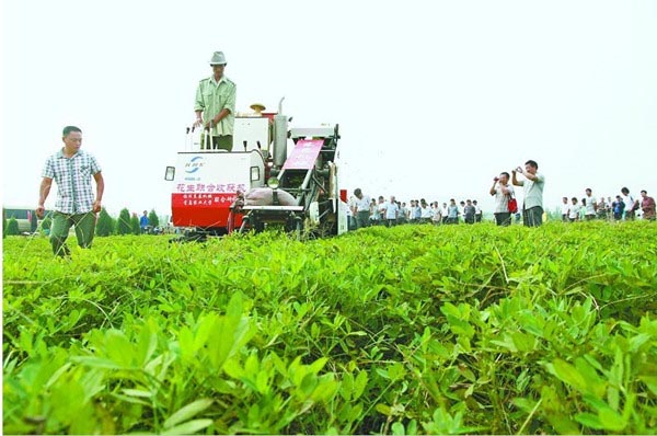 9月11日,全市花生收获机械化作业现场会在岚山区巨峰镇大土山村举行。来自全市的农机大户、农机手100余人参加了演示会。 连日来,我市农机部门通过召开现场会、培训班的形式,让农民了解花生收获机械化的好处,努力提高我市经济作物机械化水平。截至目前,全市农机总动力已达318万千瓦,农机总值27.8亿元,拖拉机达到23.46万台,各类配套机具达到49.4万台。
