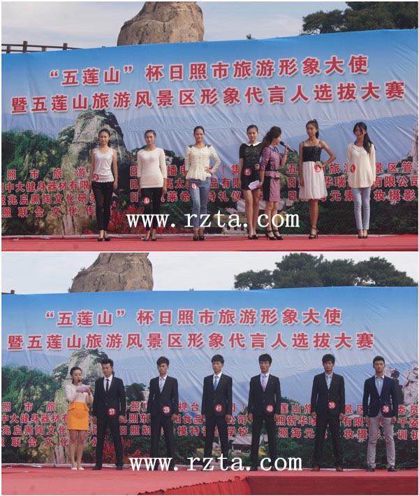 “五莲山”杯日照市旅游形象大使暨五莲山旅游风景区形象代言人选拔大赛由日照市旅游局、日照市广播电视台、五莲山旅游风景区管委会共同举办。大赛从今年五月启动以来,得到了社会各界的大力支持和积极响应,选手们踊跃报名,共有一百多名选手比赛参加。此次决赛46位选手经过激烈角逐,共评出男女组冠、亚、季军,“十佳旅游形象代言人”、 “最佳上镜奖”、“最佳才艺奖”、“最佳气质奖”、“最佳潜力奖”、“最佳活力奖”、“优秀选手奖”等奖项。经过3个环节的激烈PK,37号选手王立章和28号安奕诺脱颖而出,分别获得男女组旅游形象大使冠军。