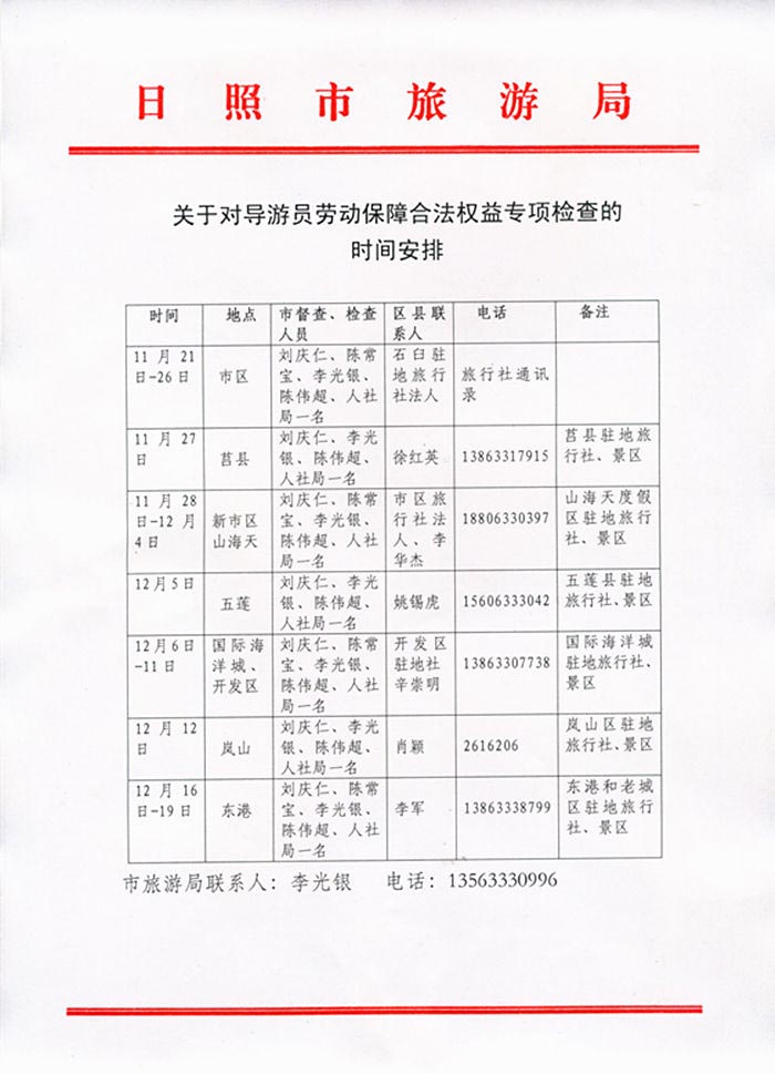 关于对导游员劳动保障合法权益专项检查的时间安排(2013年11月22日)