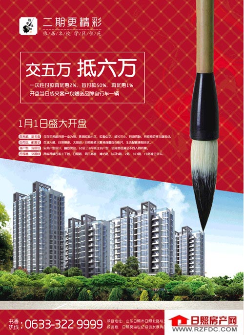 怡学佳苑——依居名校,学区佳苑,二期更精彩!1月1日盛大开盘,交五万抵六万!一次性付款再优惠2%,首付款50%,再优惠1%,开盘当日成交客户均赠送品牌自行车一辆!